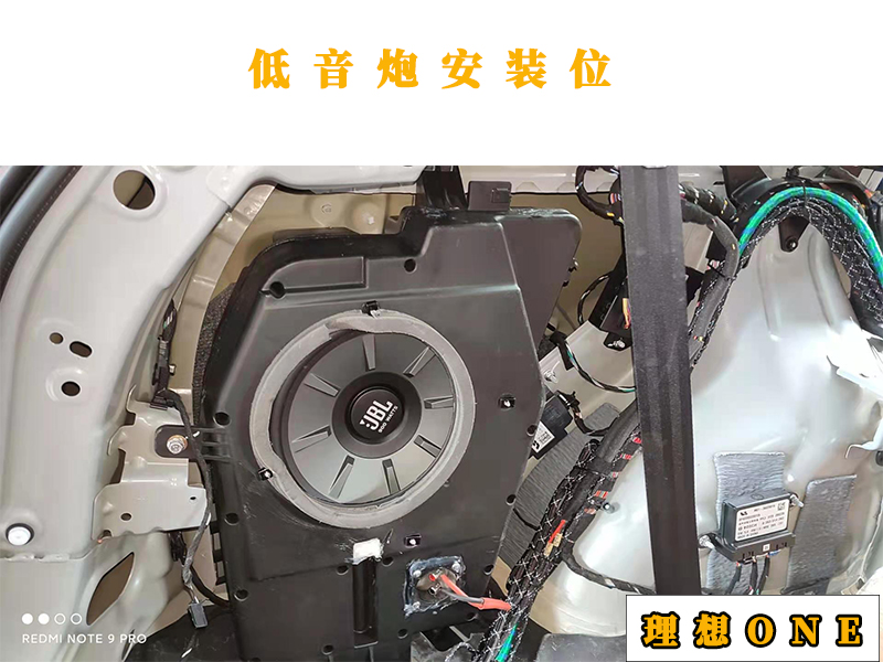 理想ONE原车是有低音炮的,就在后尾箱的左侧。由于箱体和低音炮的尺寸是有出入的,这边是再低音炮的内部经行了改造。但从外观上是看不出来的。这样下来,四门喇叭四门隔音功放DSP还有中置。就全部升级完毕了,是不是觉得音响升级也没有那么接受不了是不是,